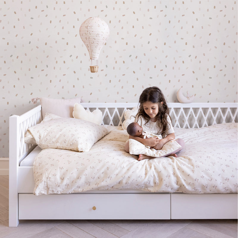 The romantic touch comes from the floral print, in shades of brown and pink, perfectly combining with our wallpaper or with the vichy print.