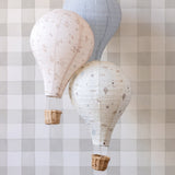 Ceiling lamp shade in the shape of a hot air balloon to create a magical atmosphere in the children's room. The shade is made of soft cotton fabric with a floral print and comes with a delicate wicker basket hanging at the bottom. Wiring set not included.