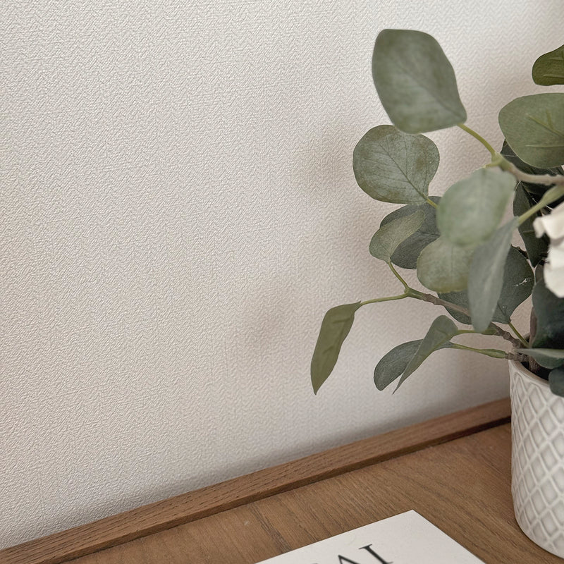 Blanc Chevronné è una carta da parati vinilica lavabile di tono bianco crema osso, con una delicata texture tessile effetto lino e una discreta stampa a spina di pesce tipo chevron.